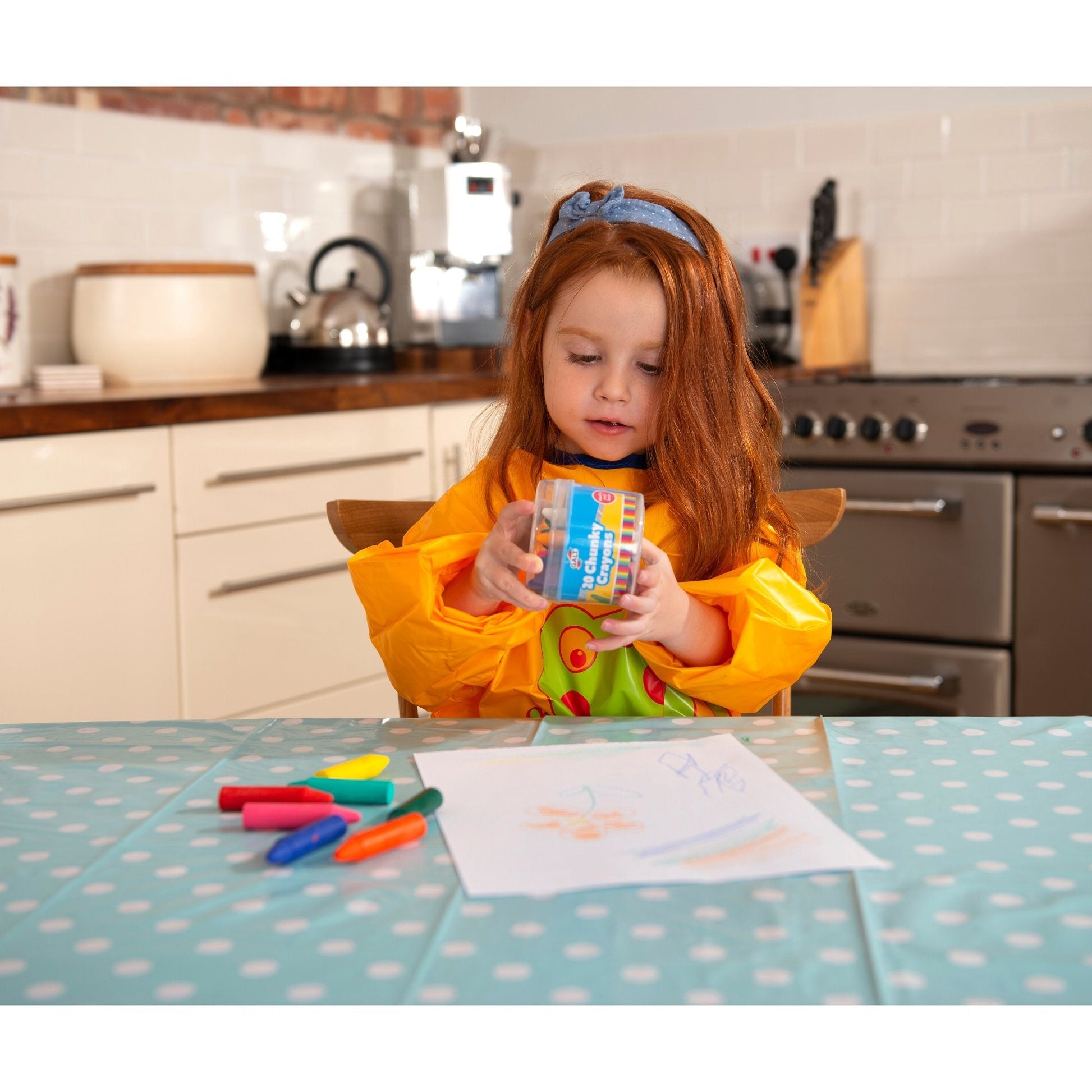 20 chunky wax crayons, ideal for small hands. In a handy tub.