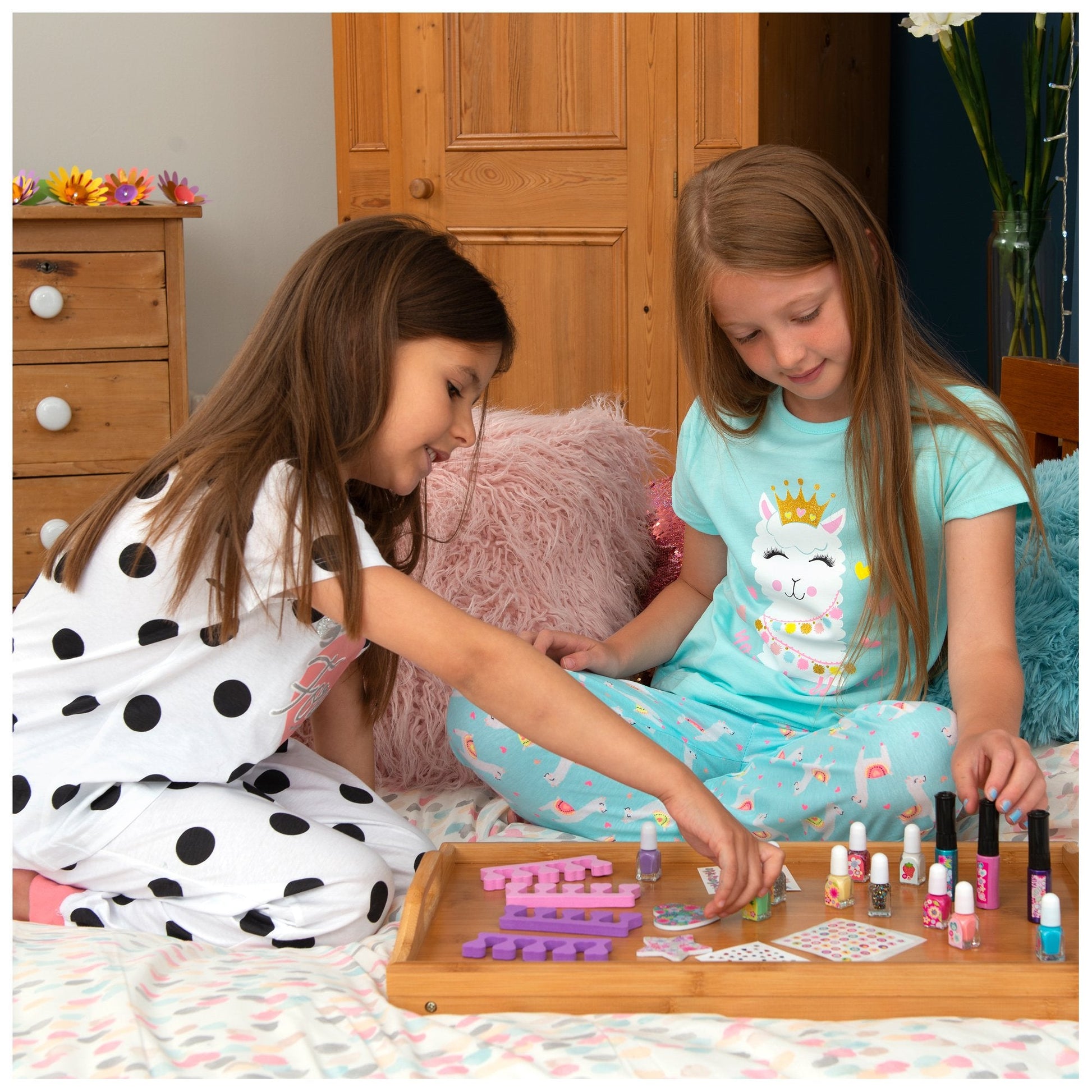 A perfect sleepover case to create fab nails with friends! Nail Design Case contains an exciting collection of colours to varnish your nails and nail pens to create amazing designs. Customise your nails with stickers, glitter varnish and gems. Once your nail creations are complete, keep all your nail polishes and accessories in the fab storage box!